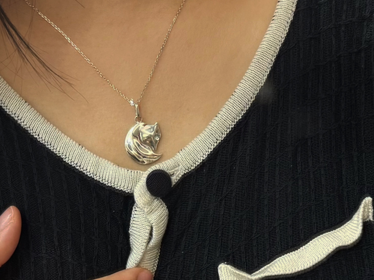 여우의 눈에는 작지만 강렬한 반짝임의 다이아몬드를 세팅하여