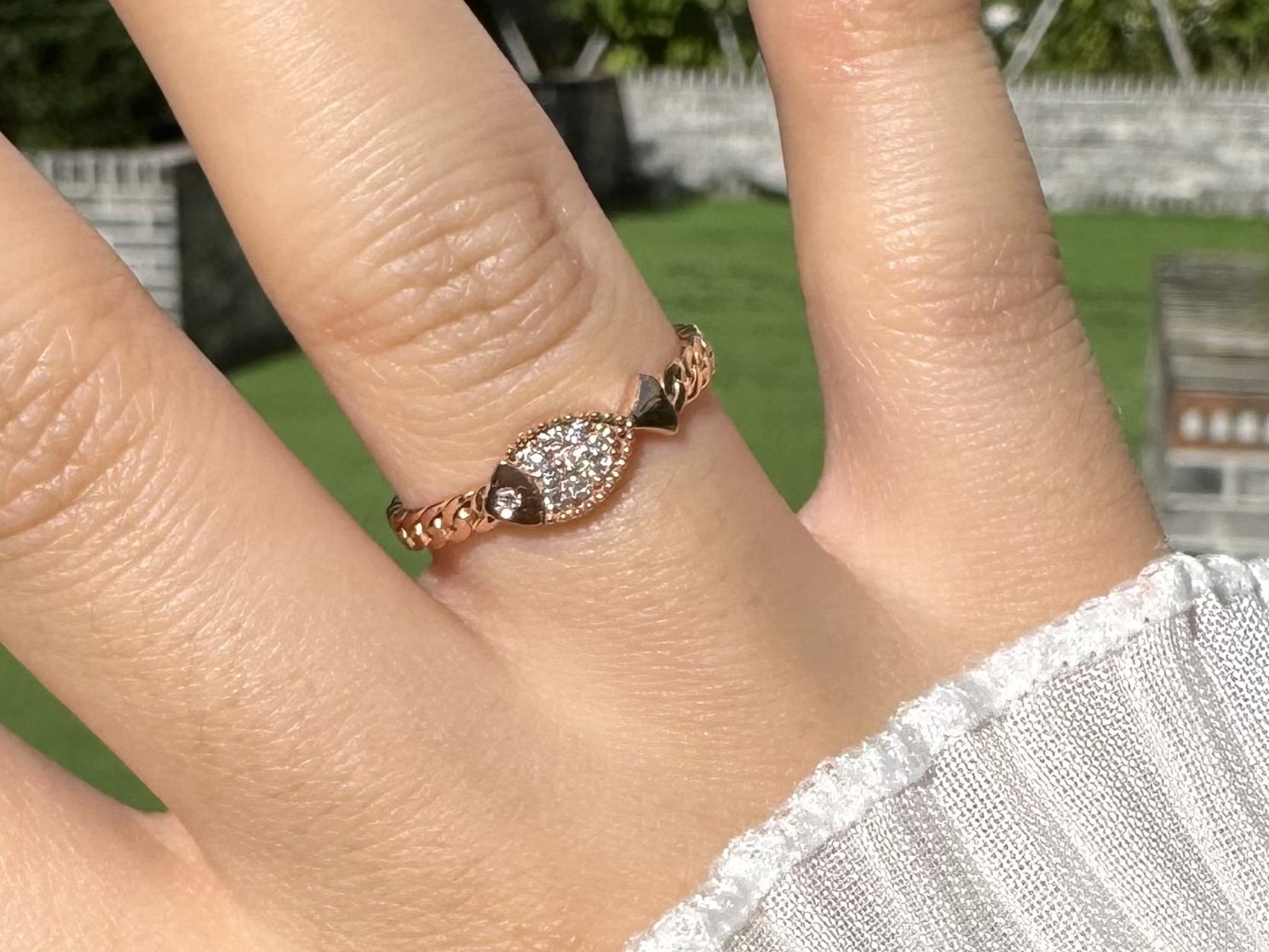중량: 14K 약 1.58g스톤: Q 10pcs사이즈: 장식 10mm*4mm 반지 폭: 2.12mm