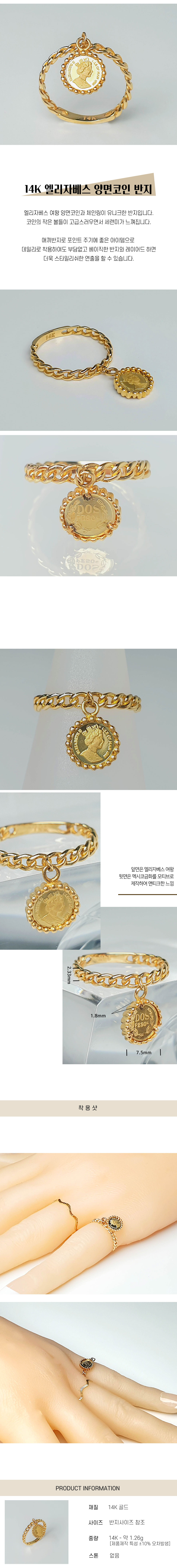14K 엘리자베스 양면코인 반지
